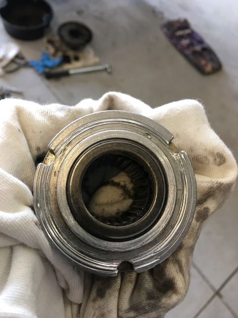 Verified by putting it up on my quad stand. Sure enough, same thing happens. Pulled hub apart again (just serviced them) to clean and refilled with popo oil. On the lift it wants to engage and sometimes does at slow speed but when I feed in more throttle is disengages. Again, the driver side is fine. Yes it is getting power as I have watched the magnet engage the armature plate. Now i did find that the back side of the clutch cage is scored with deep uneven grooves like it wasn’t seating correctly. Below is a picture: