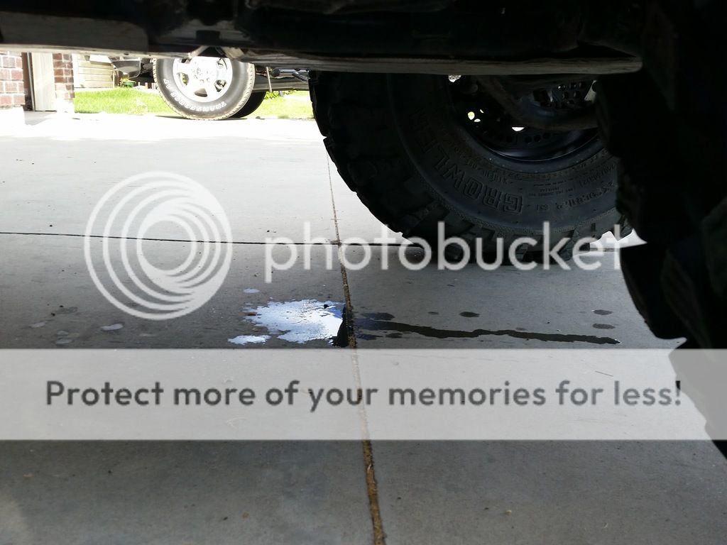 This last Friday i finished the new tierod install "which was much easier that I thought it would be given the allen head bolt on the hiem ends" and yesterday i took the grizz out south of my house a few minutes outside of boise for a test ride. I put on a quick 38 miles and the tierods are nice and solid. I got back to the house sprayed down the grizz and let it just sit drying off as i sat there drinkin beer. I then started her up and let the grizz get warm around 170F then parked her in front of my garage door in the driveway. I sat down on the pavement tossing a tennis ball for my puppy when i noticed i was loosing antifreeze out of the grizz 🙁 Looks like i blew another water pump seal!! I’m sure its from getting to hot the ride before this one.