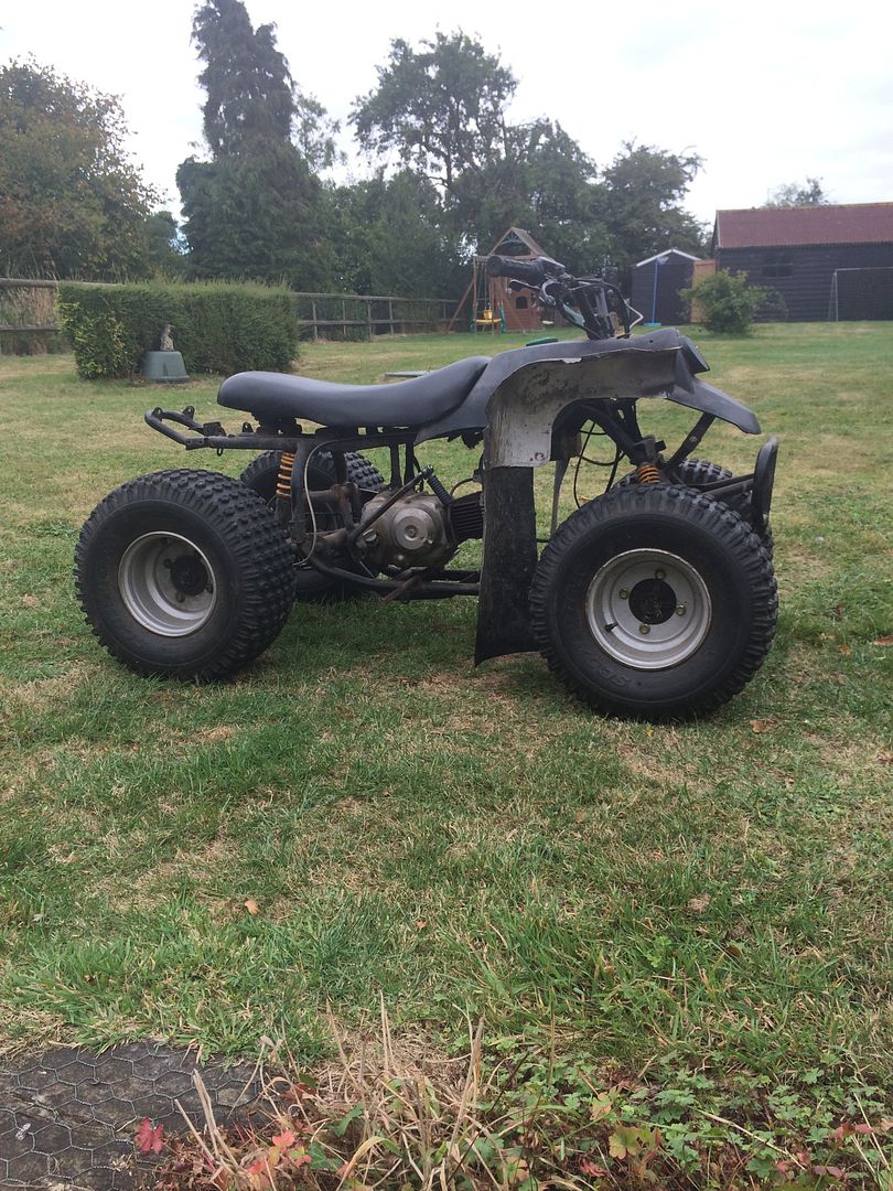 I have recently bought a quad project for my kids as a step up from the mini 49cc quad. Its a midi sized quad that needs some tidying and a few new parts least of all a muffler because it only has the header pipe and is frickin loud.