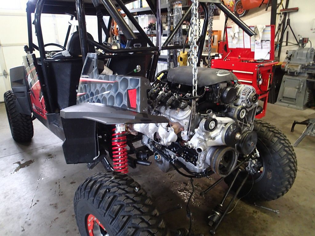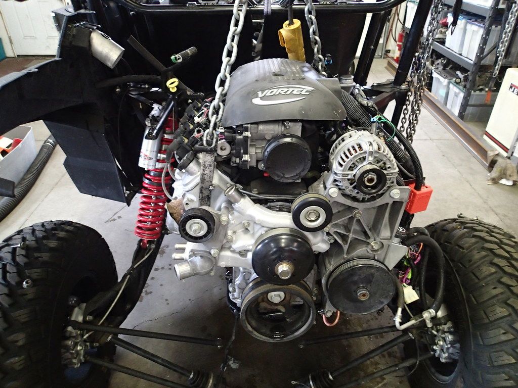 Initial fitment looks good. Amazingly there is pretty good room for the engine. Some traditional sandrail headers should fit fine. Trans should be here next week to see how it will fit.