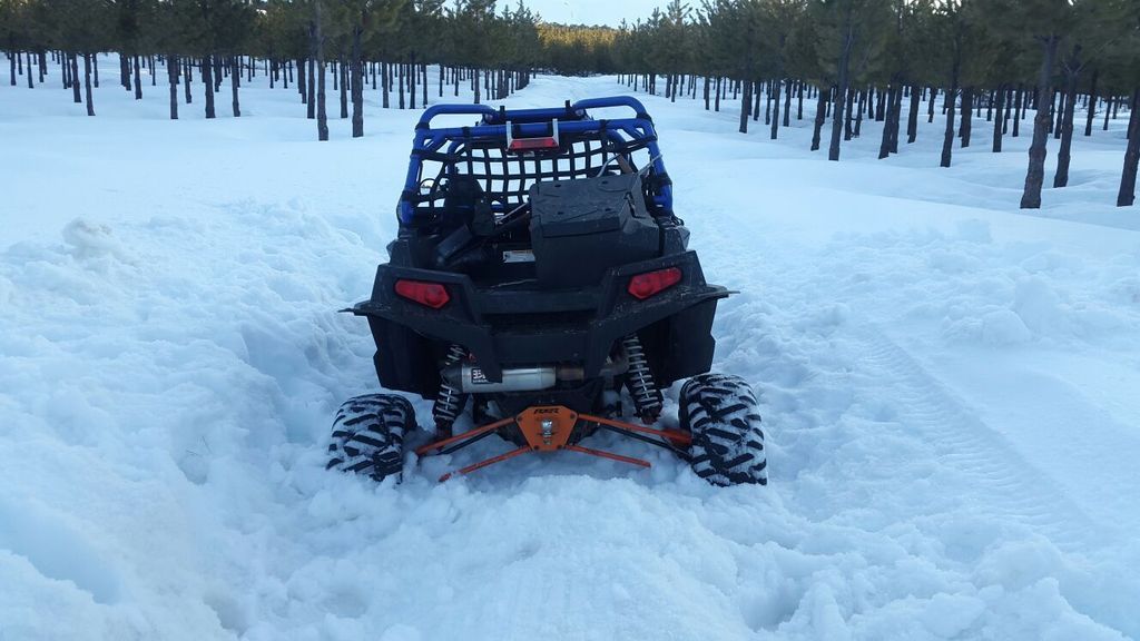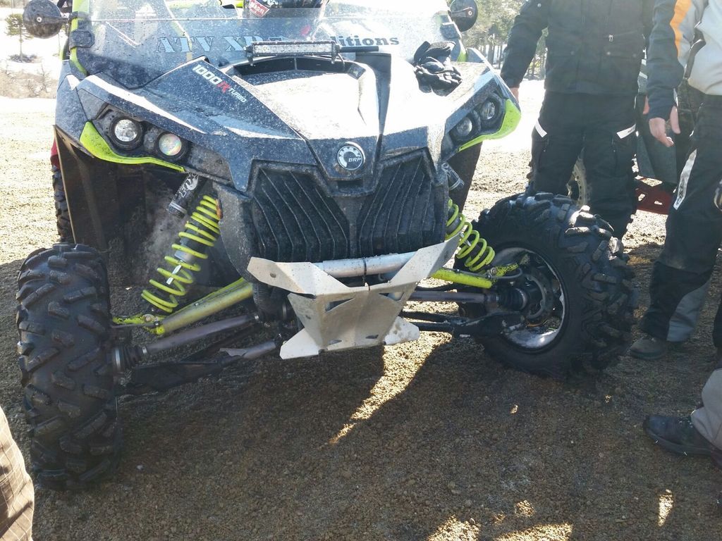 I ditched the factory wheels and tires for a set of W.E. 15" beadlocks wrapped in 30" BFG KR2s at the same time, and added a 3/8" Factory UTV skid in place of the stock skid plate.