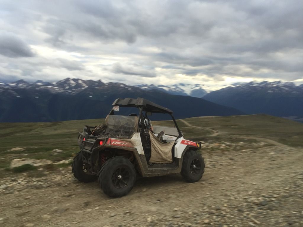 Finally this morning I hopped in the RZR to buzz the kids around the campground and found one of the front wheel bearings was ratched.