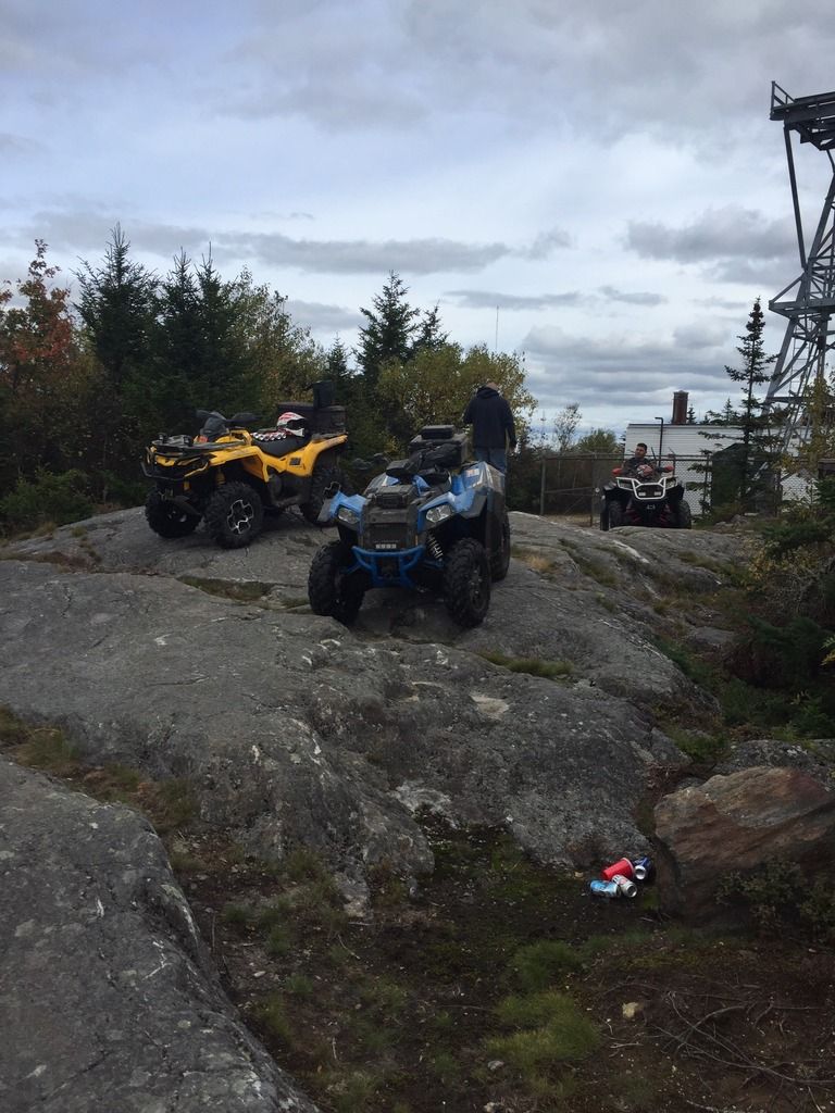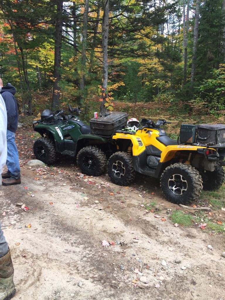 Rode Maine last weekend. Four of us went up. One grizzly 700, a can-am outty1k, and two scrambler 850xp’s. The scramblers are fast. After many drag races the scrambler and the outty are about the same in speed and acceleration. It all came down to who had the most traction. I rode the outty for a while. It had lots of balls, but was heavy and big feeling on the tight trails. I let the big bores shoot it out on the straightaways and one of the guys on the scrambler hit a substantial puddle at about 50 mph and hydroplaned. Needless to say there was some carnage. No one got hurt thanks to the rider getting thrown into a mud puddle. The atv broke the front metal bumper brackets and radiator support. Some trail repairs and Budweiser got him up and running for the rest of the weekend. I slashed my rear tire at the very end of the weekend (bummer), but other than that the grizzly ran great with about 4000 miles on the odometer. At camp I brought up my black powder cannon, and rocked the neighborhood throughout the evening. Titos vodka and cannons go great together by the way. The last trip away is always about the smiles not the miles and more boozing than cruising.