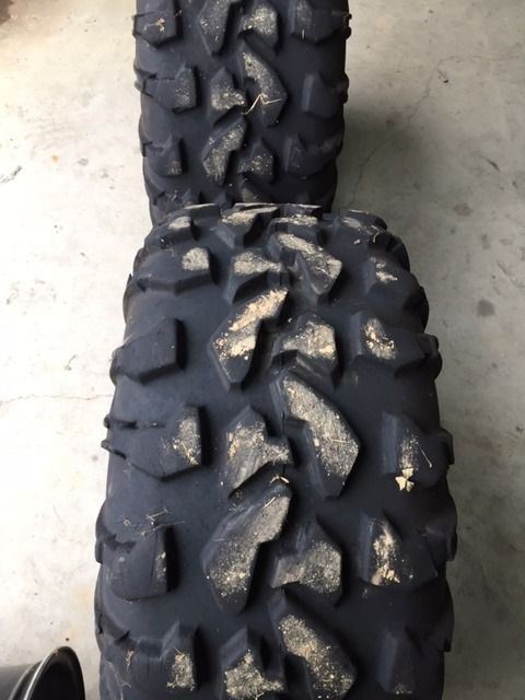 These are basically new tires. got them with intentions of going on a street legal rzr and just never did. They were mounted and pulled out of the garage about 100 ft and taken back off