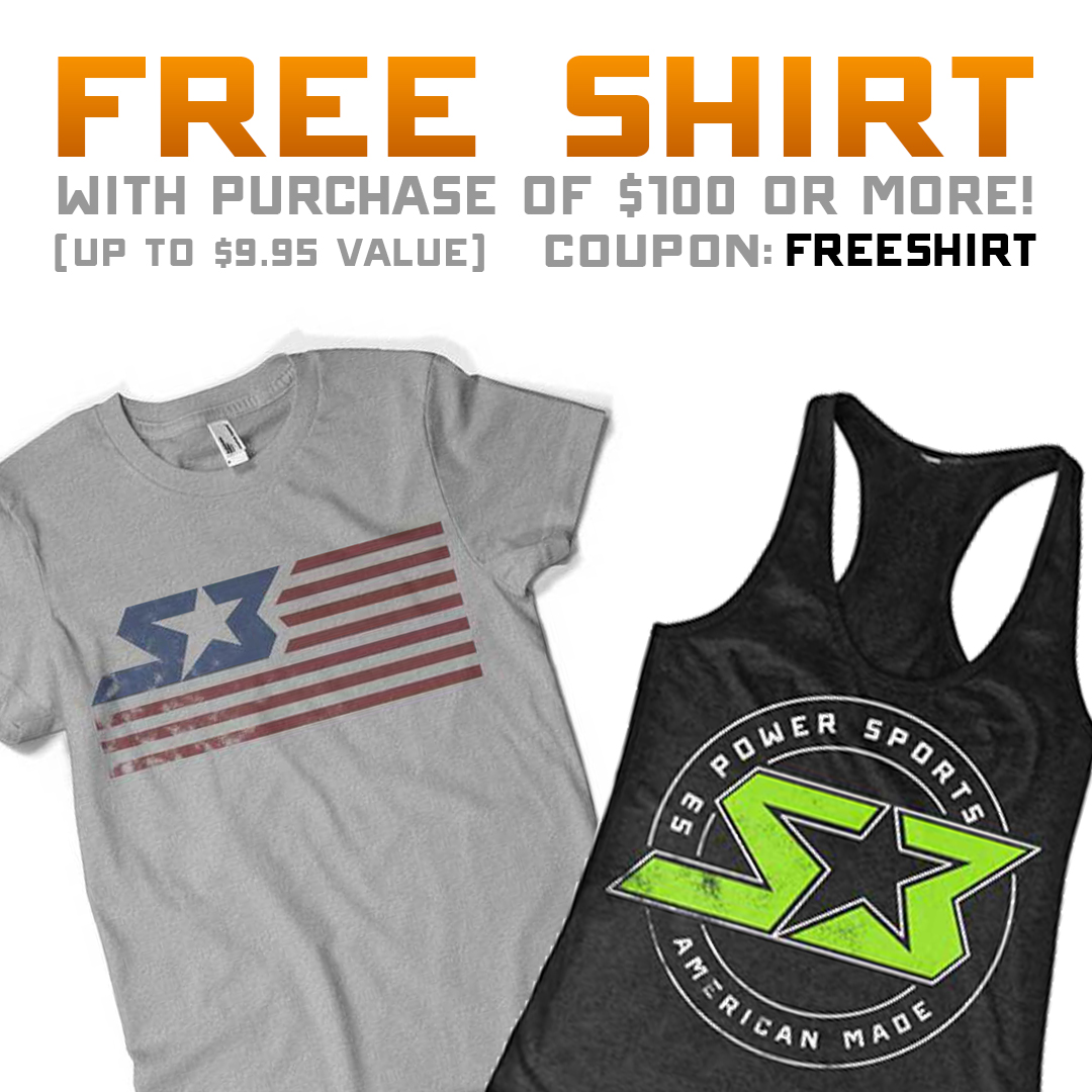 Free Shirt!!! Get a Free T-Shirt or Tank Top with your purchase of $100 or more! Use coupon code "FREESHIRT"