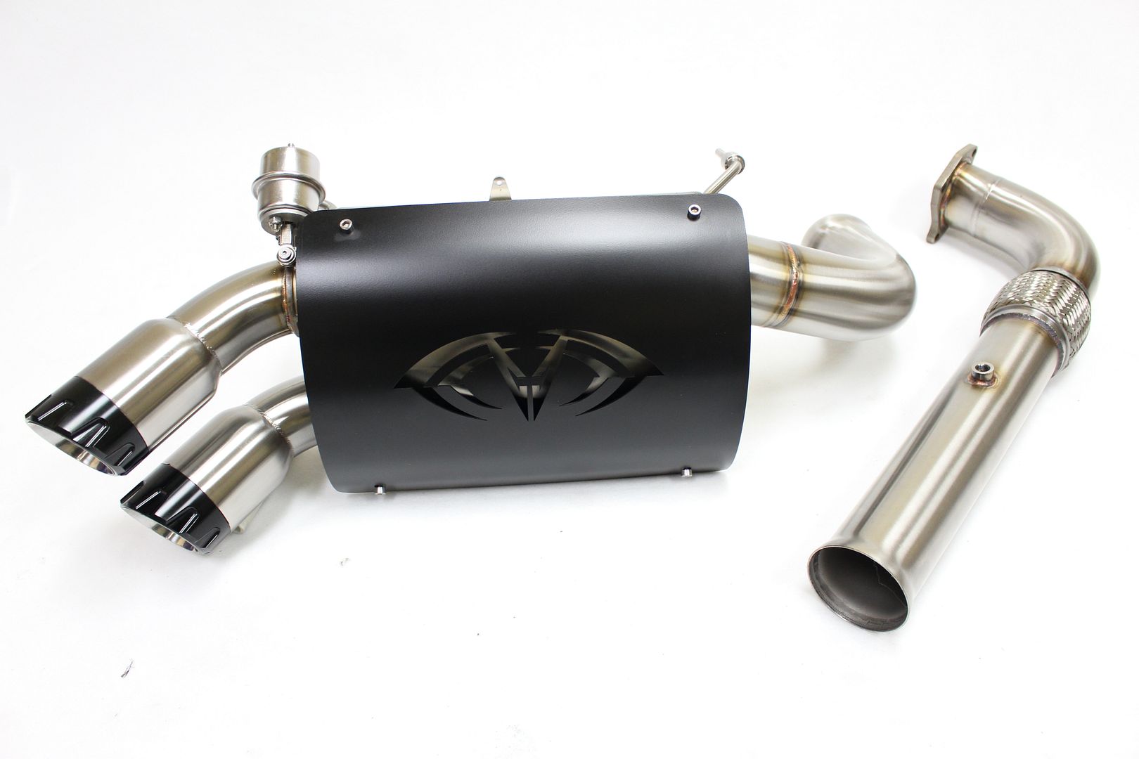 Evolution Powersports is proud to introduce our "Captain’s Choice" 3" SS Turbo Back Exhaust. This idea has been in the works for some time and after many renditions, it is ready for production. We call it the "Captain’s Choice" because the driver can set the boost pressure at which the valve opens via a valve which is mounted on the dash or between the seats. The exhaust is very quiet, yet has a nice deep rumble when the cut out is closed. When open, it is straight pipe and you can distinctly hear the turbo sing. This coupled with our Blow Off Valve kit is the best sounding combination you can buy for your XP Turbo. The entire exhaust including the muffler is made from 304 Stainless and tig welded. The turbo flange is made from 3/8" SS. It includes a spark arrestor, cut out valve, line to operate cutout as well as a new silicone charge tube with port for valve operation which can also be Tee’d into for a boost gauge. As with all of our exhausts for the RZR XP Turbo – the heat shield can be color matched to the bike. All of the factory heat shields remain in place. The charge tubes will be available separately and are also available in all of the colors the RZR comes in.