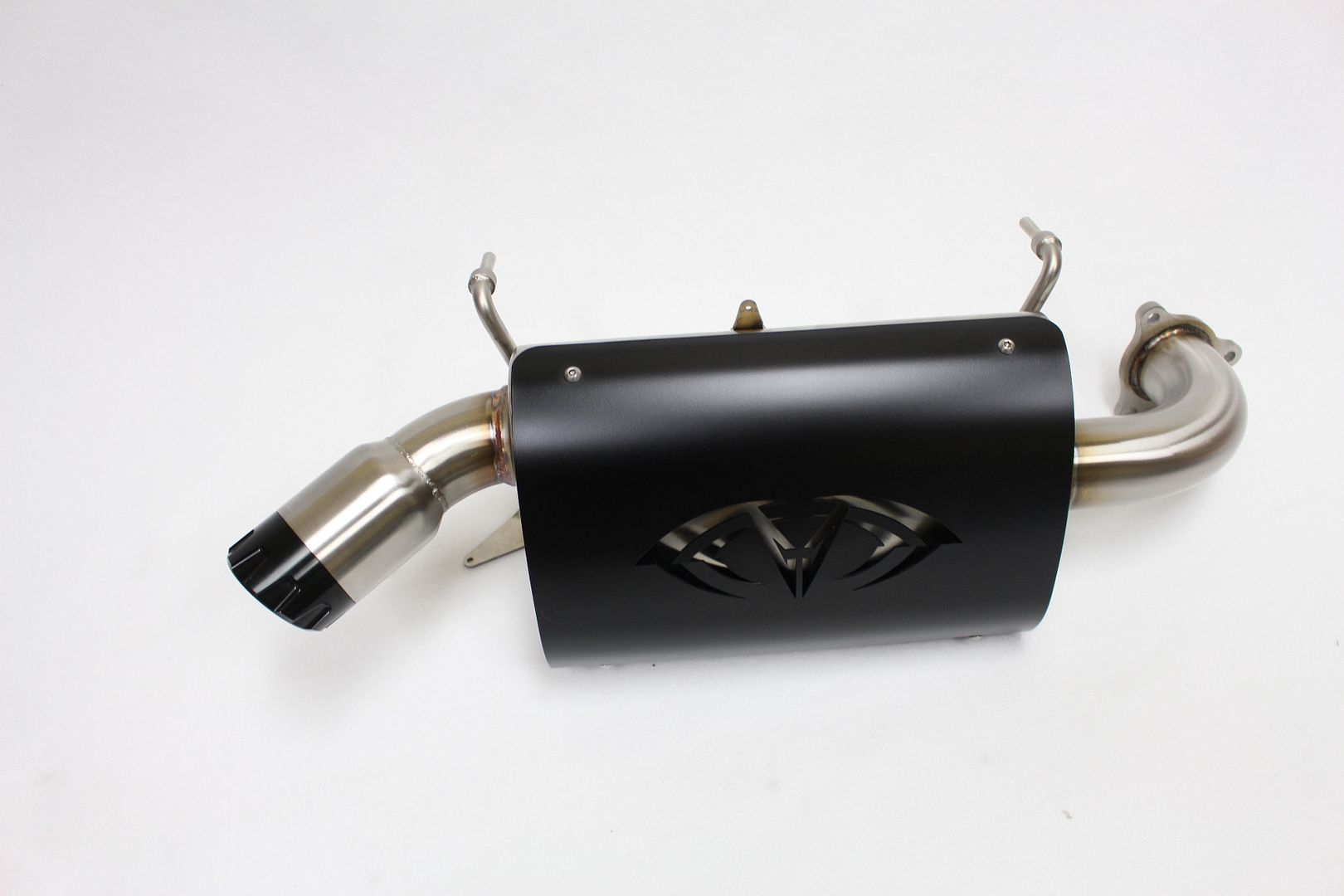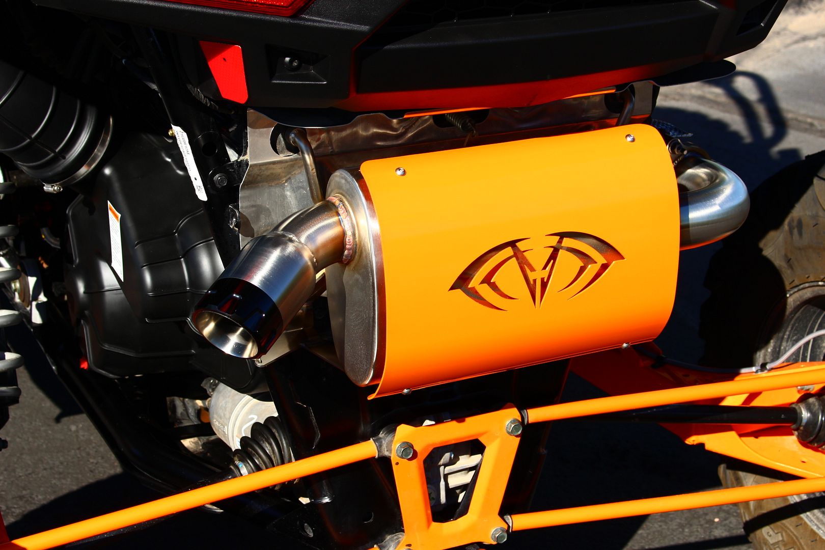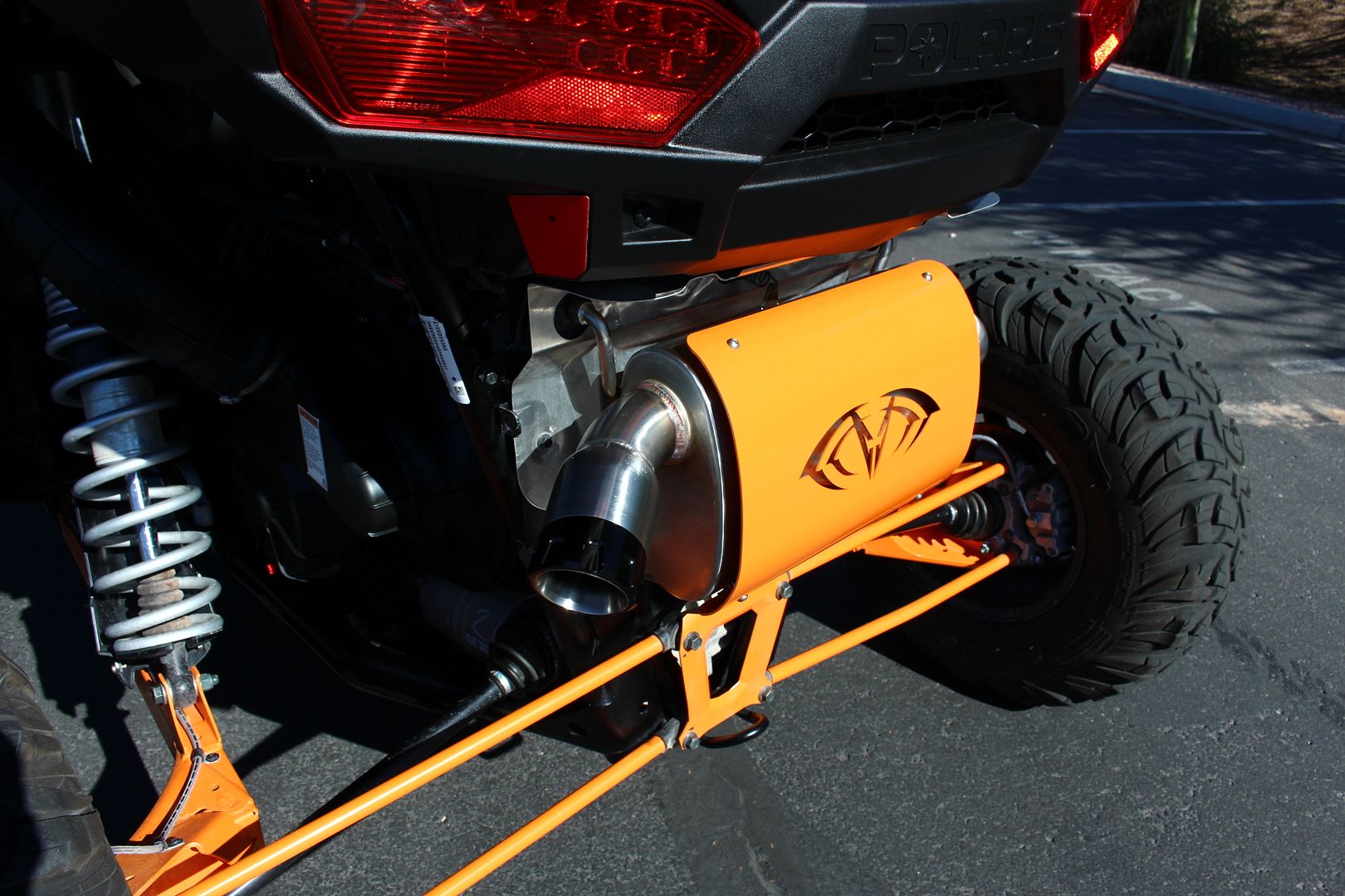 Evolution Powersports is proud to announce that our MAGNUM series exhausts are complete and are shipping for the Polaris RZR XP Turbo. We designed this exhaust to have a deep note that makes the Polaris parallel twin sound more like a V-twin. Our MAGNUM series are quieter than most twin exhausts and feature a unique trapezoidal baffle insert which lowers the dB’s far more than just packing alone. The heat shield that attach to the muffler itself are available in Black, Orange, Red and Voodoo Blue. Our exhausts are all stainless steel and have a 3/8" thick water jetted flange which will never warp. A spark arrestor is incorporated into the design. These are the exhausts we have built our tunes around. For those who don’t want to tune their vehicle, our exhaust will net you about 3 wheel horsepower over stock. We will post sound clips on our you tube page shortly. These will be up on our website today with prices.