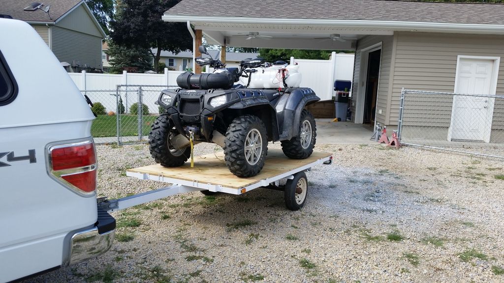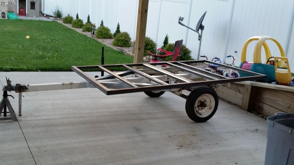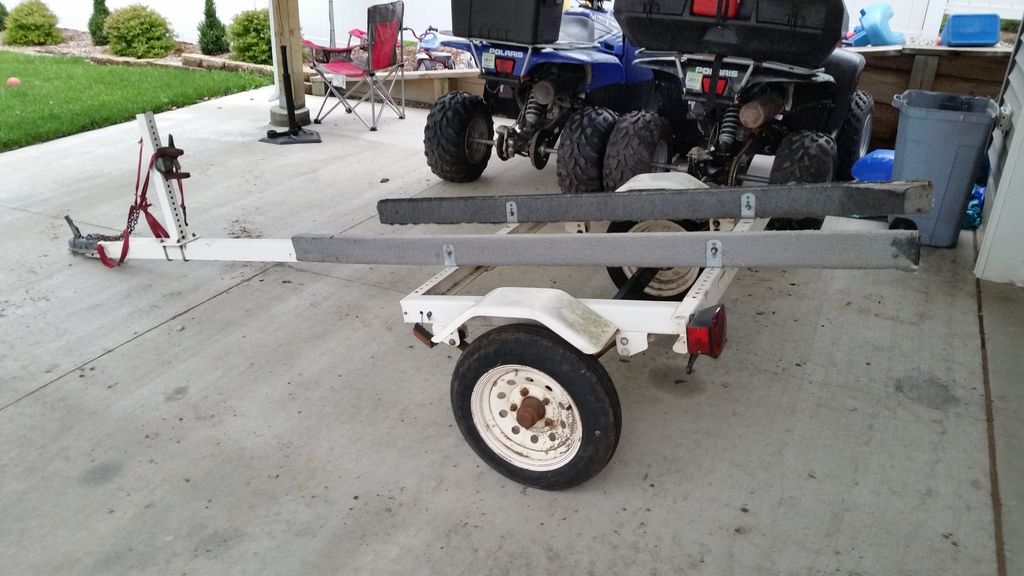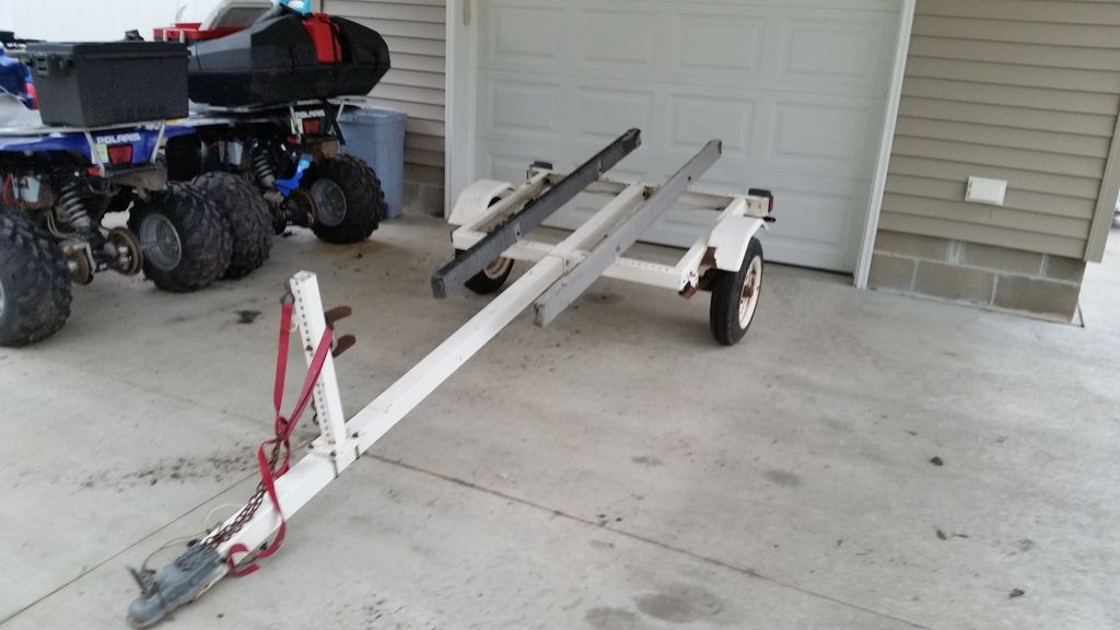 Been looking and people.want too much for junk. Went hr out of town to buy a 4×8 pos trailer just to haul.atv to our land vs my 20′ flatbed….they only had 1 of 3 boxes. So called a buddy that seems to have anything and said i was looming for a utility trailer to haul just my atv for working on our land, and once there be able to hook it up to quad for hauling tools/gear to beach, whatever….he said come out, may have something for ya…i did and scored a single place.jet ski trailer.