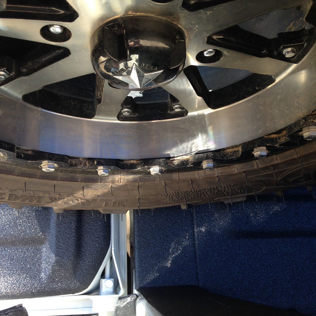 This picture shows from the inside of the wheel inch clearance into the bed.