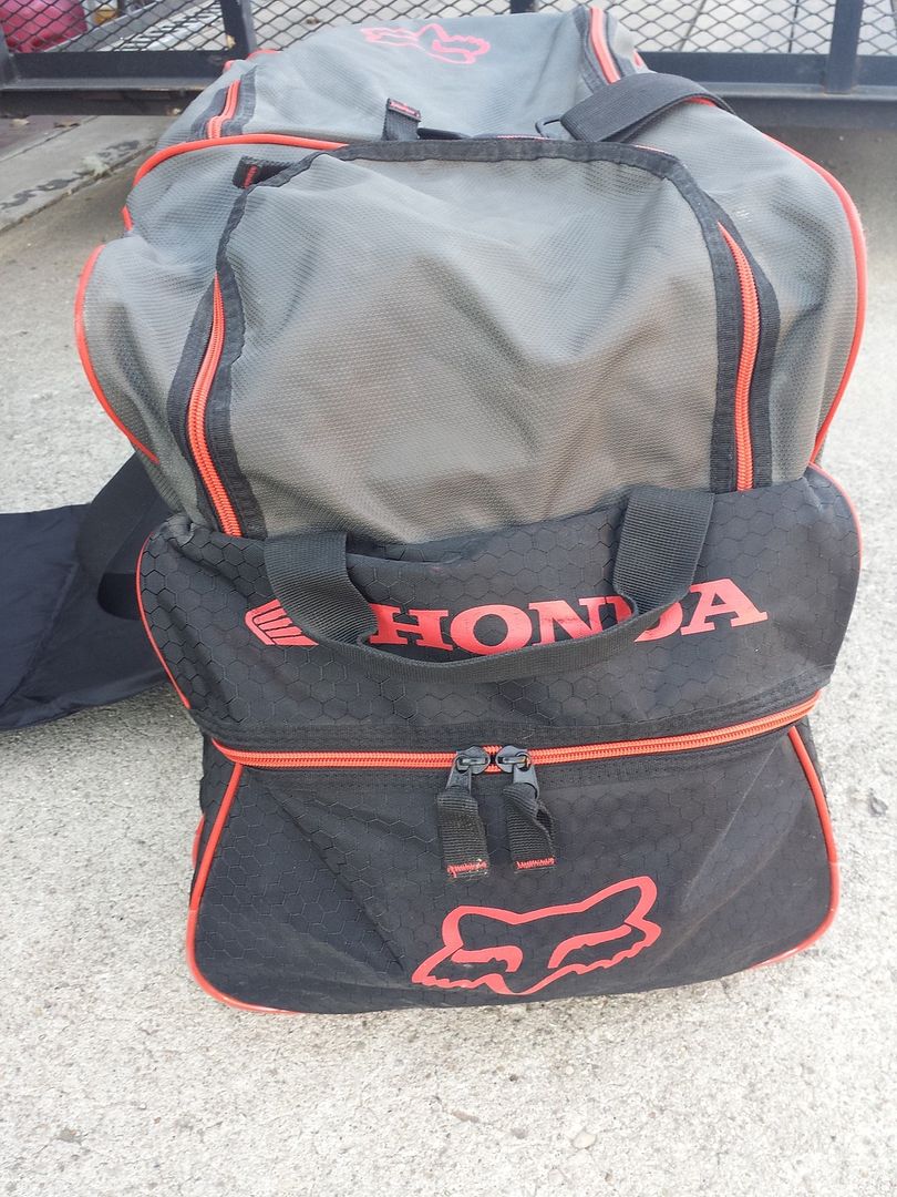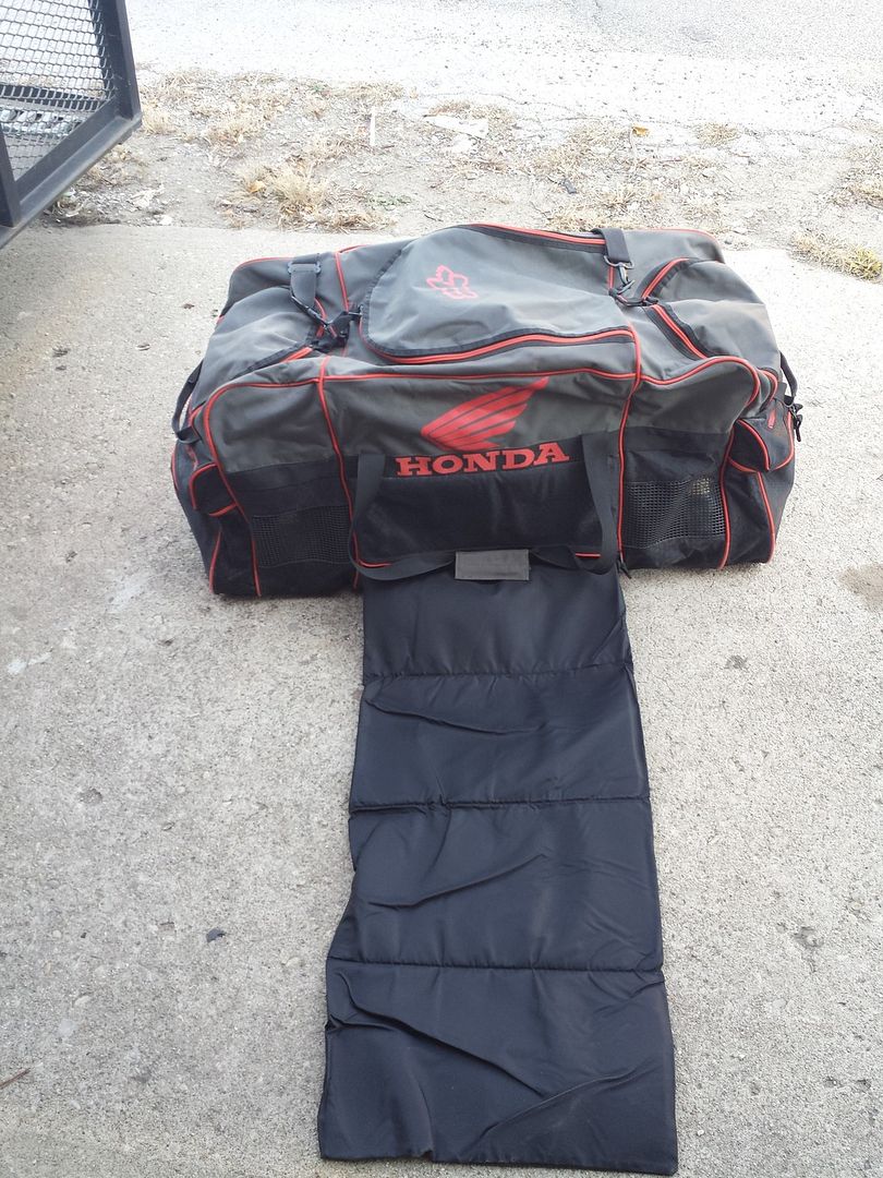 I recently picked up a used Fox Honda gear bag, for what I consider a sweet deal $41.26 shipped! Bag is over all pretty clean, including the boot compartments. It’s plenty large, and has lots of compartments. I found what appears to be a roll out mat on the one side? Is this like a changing mat, you know something clean to stand on while taking off boots? It is sewn into bag, doesn’t come all the way out, but folds up nicely and fits into lower side compartment with room to spare.