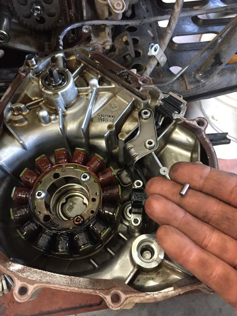Oh the fun! I’m changing the stator on a 2008 Grizzly 700. The side cover came off without any problem, but a small pin fell out as the cover was removed. I cannot identify it or locate where it belongs. I’ve looked at diagrams but don’t see it pictured.