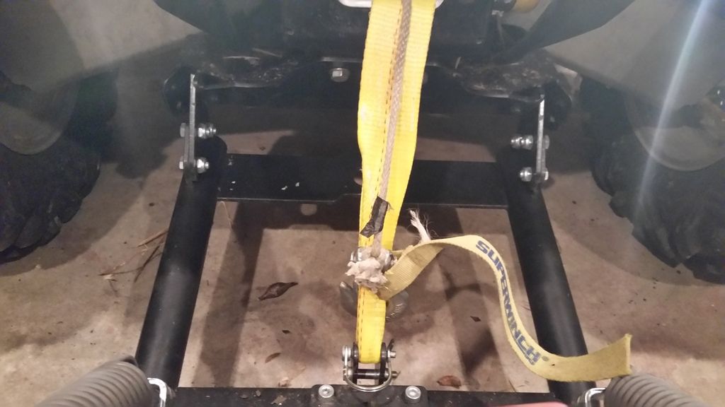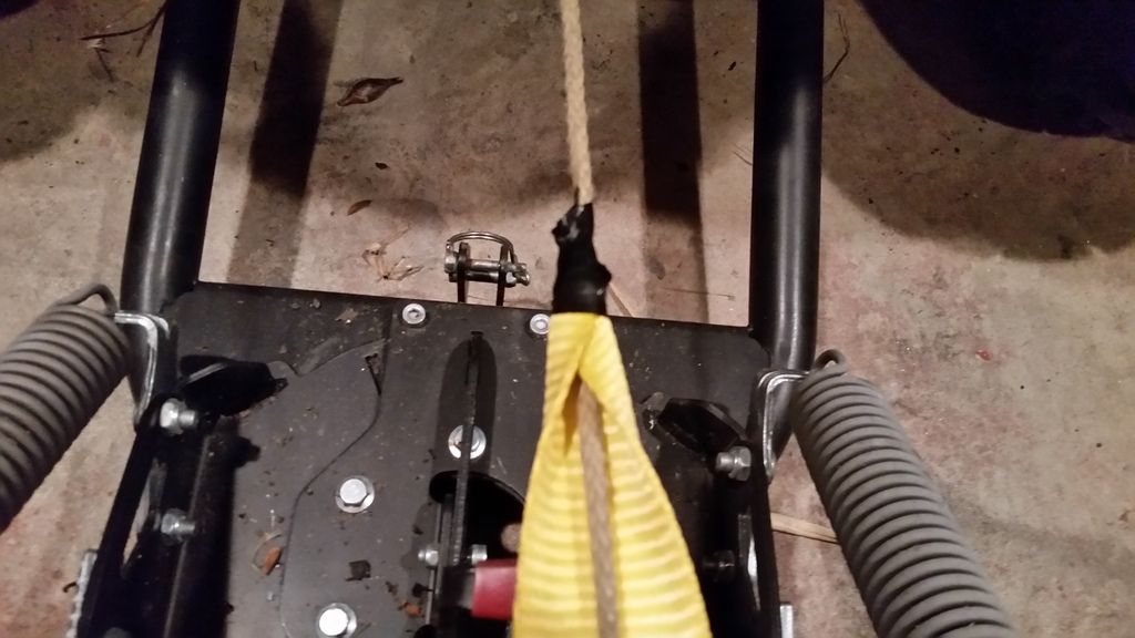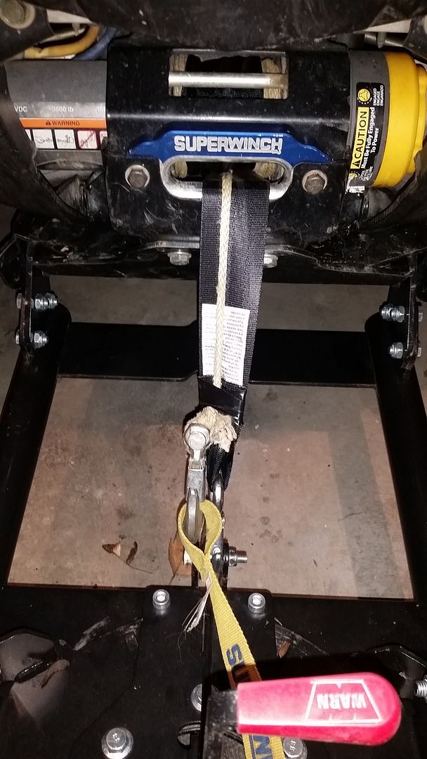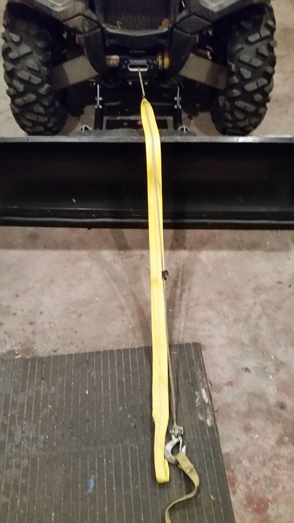 I cut a good 4′ chunk of 2" strap (boat winch trailer strap or in this case, I used a 6’×2" wide lifting sling cut to about 4′. Frees pool your winch and pull out about 5′ of rope, then reengage winch selector from freespool to engaged. Match the end of the strap to the end of the winch hook.