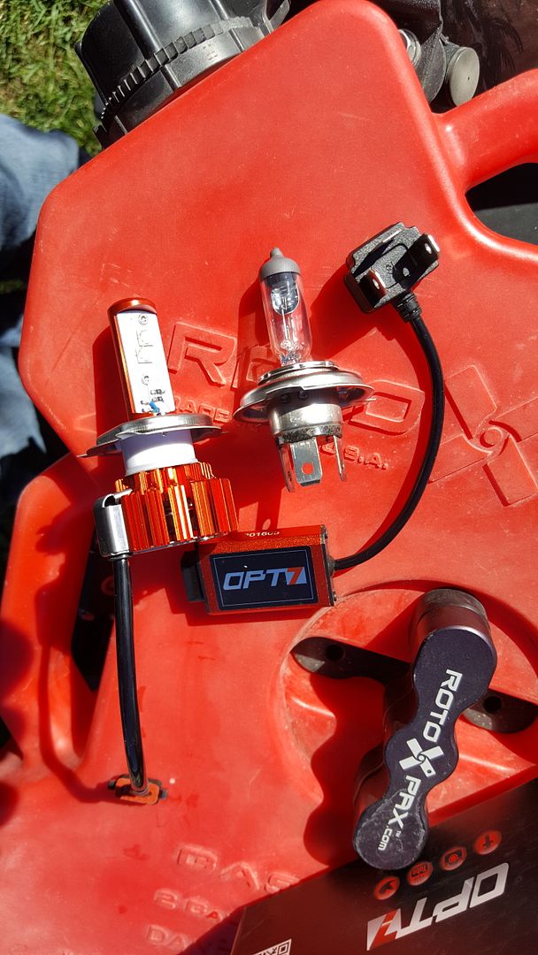 Just picked up and installed Opt 7 Fluxbeam LED headlight bulbs with Hi/Low. 6000k, 40Watts per bulb with 3500 Lumens per bulb. They have a 2 year warranty, and are IP67 rated. They are a little spendy at $100 off amazon, but I hate the look of the stock bulbs. I’ll report back later with more use.
