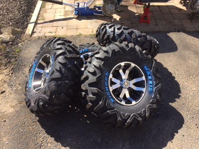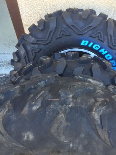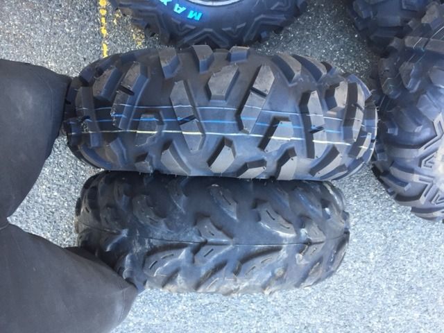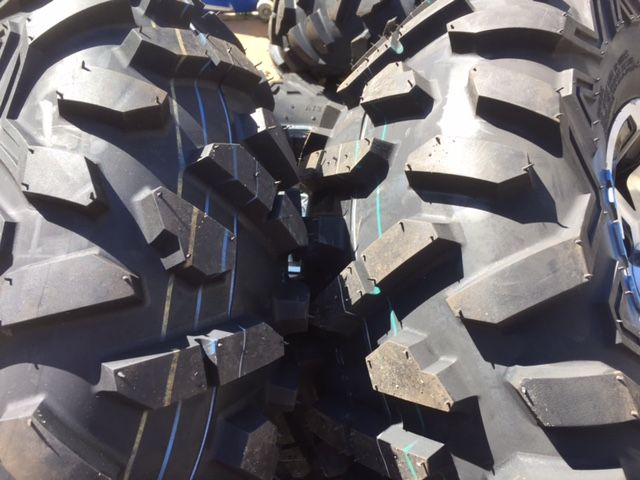 Well I ride on a lot of sloppy rocky trails and ended up puncturing a tire and by the time I got home it was nearly flat. Hole was in the side and it just didn’t seem like a good idea to plug it so I came on here and did some research. Went with the maxxis bighorn tires in 26×9-12 and 26×12-12. They are a little wider and offer more protection for the wheels although its too late for that as mine are already all chewed up.