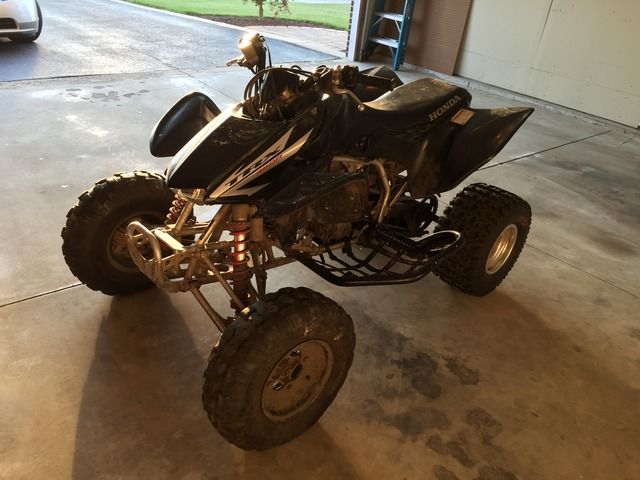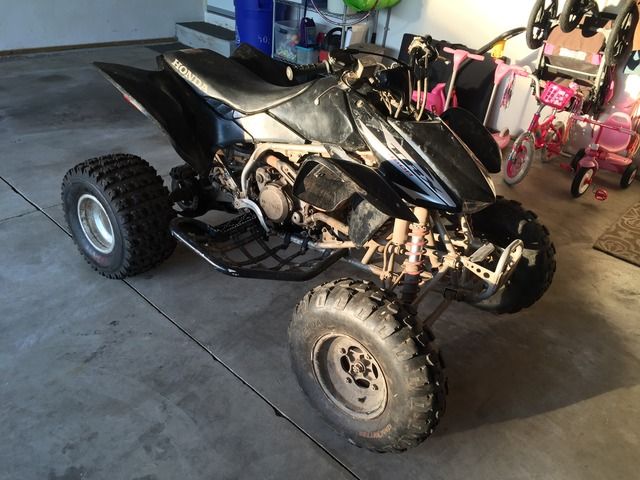 Picked up this beat CraigsList special 2006 450R on the cheap earlier this week. I went to look at it knowing it threw the chain and cracked the left side case so it was leaking oil all over. When I got there it mysteriously wouldn’t start even though it "ran fine" in the ad. I thought that’s my kind of beater quad and loaded her up.