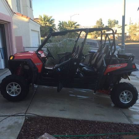 -2012 Polaris Rzr 900 XP 4 door. Alba stage 2 kit. Air filters, programmable A/F Controler, cams, adj clutch, SLP muffler (like the one on the Jagged X )Grill with led light bar. 43in led light bar on top. SSV stereo with 10 in sub. RF remote control iPad Controler. Aluminum doors with slam latches by Pro Armor. Factory manual. 2 led whip light flags. Paddles and smoothies on DWT wheels.