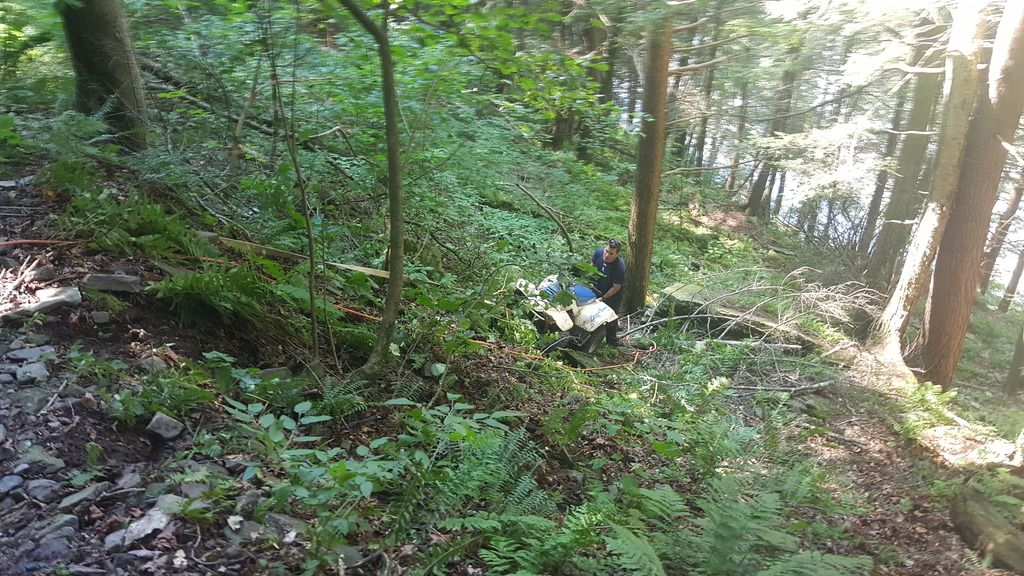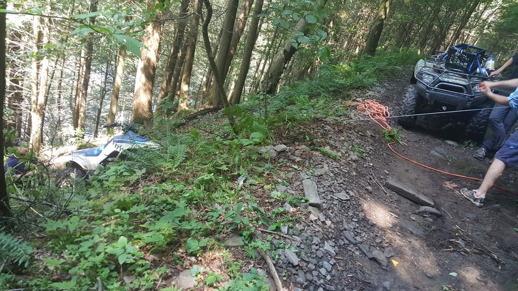 Well, I had an interesting weekend. My nephew rode one of my quads off a cliff!! Thank god he is ok. My son is a PA, and he was with us so he checked him out and he just had some scratches and bruises. The quad got wedged between a rock and a tree and that was a good thing because otherwise it would have ended up in the Delaware River. We recovered it and got it running again but it is pretty banged up.