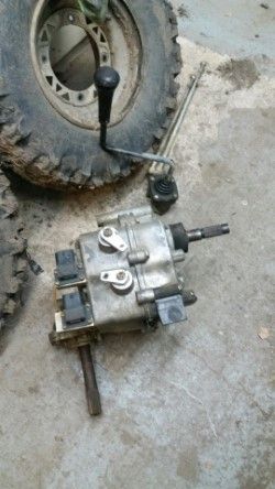 Where I am at as of now. I grenaded the secondary due to failed button bolts. So I acquired a replacement used secondary. When we pulled the secondary we noticed a crack in the case. Now I could have tig welded this but decided it was a good enough excuse for a HI/LOW tranny swap. I managed to pick up a tranny from a 2000 xplorer 400 with the shifter and linkage.