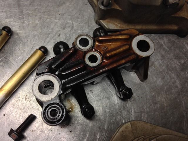 I started tearing into the top end. First thing I noticed was the rockers and their holder were toast.