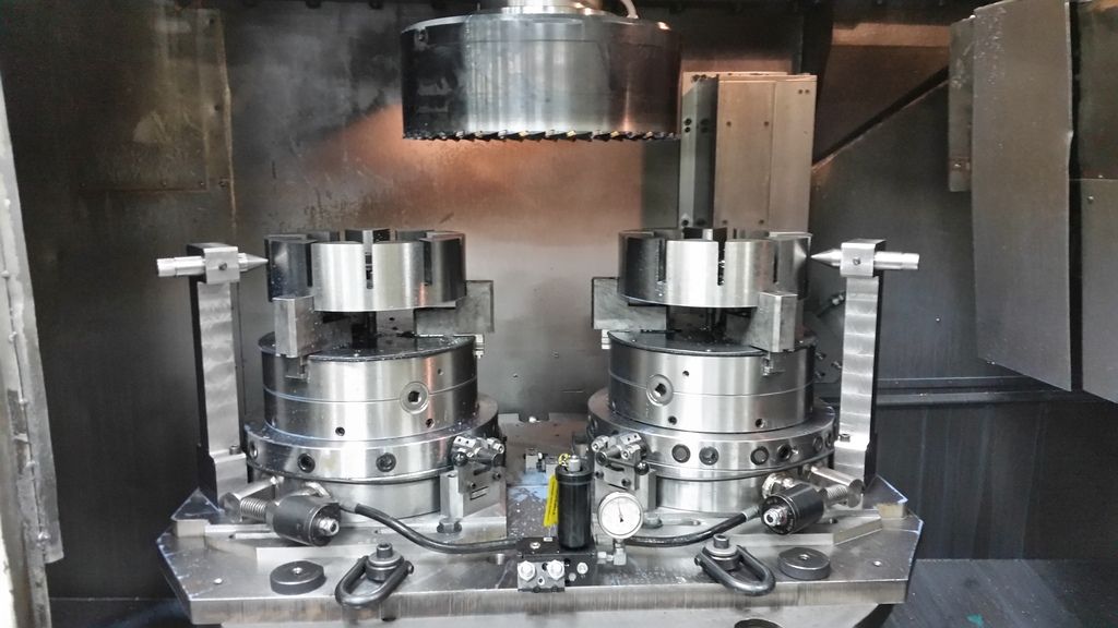 Volunteered to run a machine today thats doing work for another that went down..had hot parts. I talked to the guy running it yesterday to see if hed have it set up, he didnt think so so spend 2hrs this morning changing heads on the cutter, 42 new inserts, had to move pots out for these larger than they were running rotors yerterday and get them swept in, sweep in cutter….then 2hrs into running fixture hydraulic unit broke