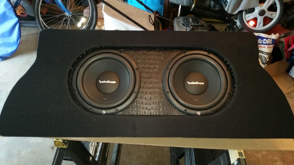 Anyhow, just bought a complete sub box, bad to turn it upside down and made place.to mount components, built a rear "firewall" since i wanted subs firing into cabin and that requires sealing off trunk for noise cancellation purposes. Then added some alligator pattern material to break it up some so if a person folds seats down to see the subs its a lil different than just carpet.