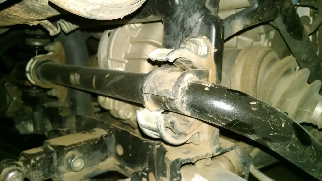 I was doing a walk around the machine tonight showing a buddy the improvements over the 800 and i noticed this….. I thought it had a little more sway /body roll more than usual and now i know why….. Hard hit??? Weak part??? Wrong sway??? or could the A-arm have hit the sway bar which in turn broke the bracket??? I’ll investigate a little more tomorrow after work….. Here are some pics……