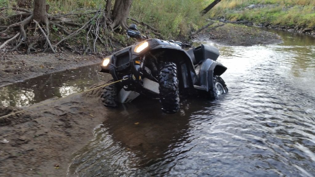 Had gopro mounted gunna splice a vid of what we ve been riding lately as far as blasting through whatever to make new trails, we only rode a few hrs saturday on some new to us ground and did alot of creek crossings to get by deadfalls and what not…kinda slacked off since only had to winch about 5xs to get thru stuff and once up a near vertical steep bank to get up and around a sticking point (lotta trust in our rope for that one in particular lol)