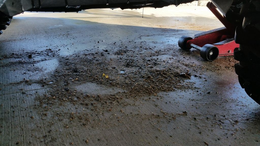 This is only part i hate of creek/sand riding…mud washes out…sand churns up and gets everywhere, sunday sprayed everything off top to bottom then took tires off to regrease and seen all this still in bellypan, told wife ill start saving all this sand and make a free sandbox for her daycare kids.