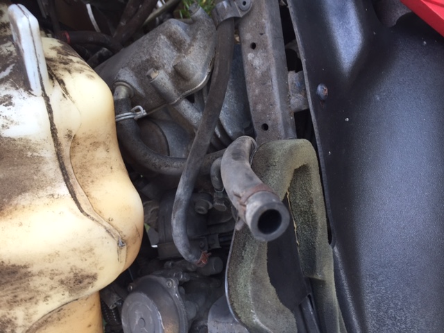 If you can’t make it out from the photo, one end of this tube is fastened to the top of the cylinder and the other end is … well … just swinging in the breeze. The clamp is in place, but it’s not connected to anything.