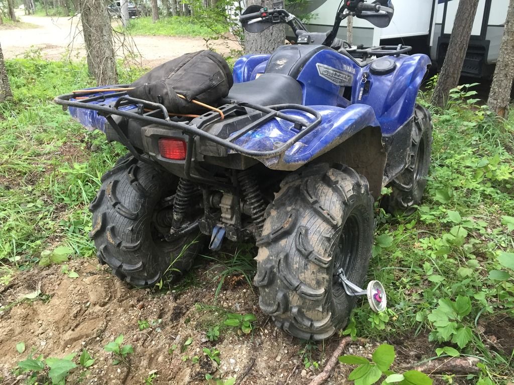 Finally this morning I hopped in the RZR to buzz the kids around the campground and found one of the front wheel bearings was ratched.