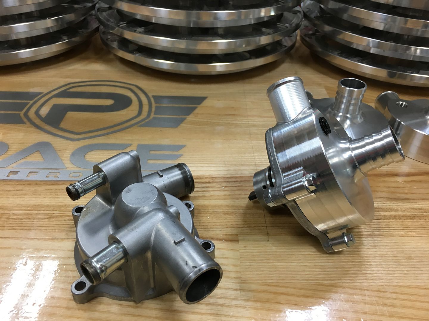 Want your Z1 to run cooler??? We Just got done with our redesigned water pump housing, This design eliminates the 150* bend out of the water pump "which its prone to get air locked or trap air in the water system" and direct the water straight into the impeller, this is much better for water flow and doesn’t turbinate the water which causes heat and air bubbles.. Through testing our pump housing flows 6 GPM more water at just 4,000 rpm!!!!! the test also showed the water to come out much smother hents the increase in GPM.. We also eliminated the port that bypasses the water from the back side of the thermostat.. [IMG]